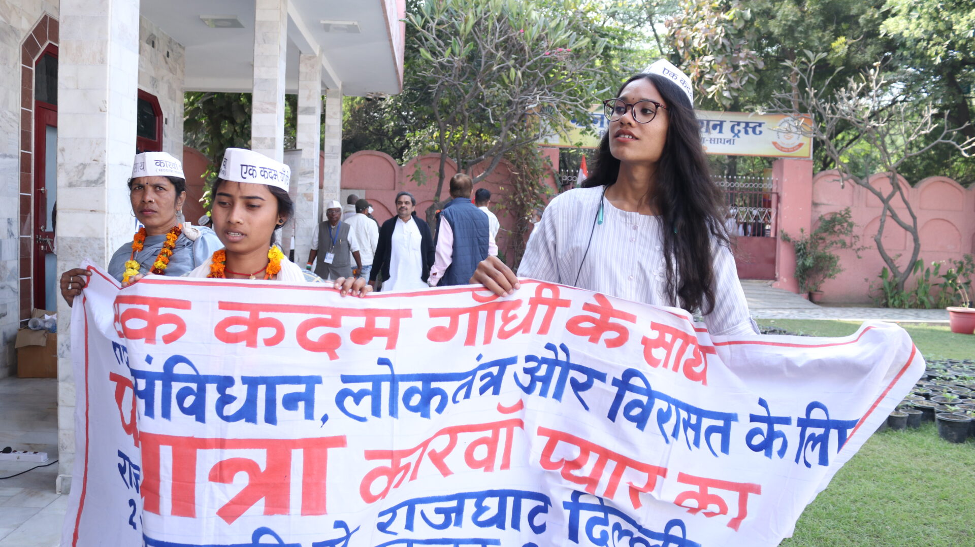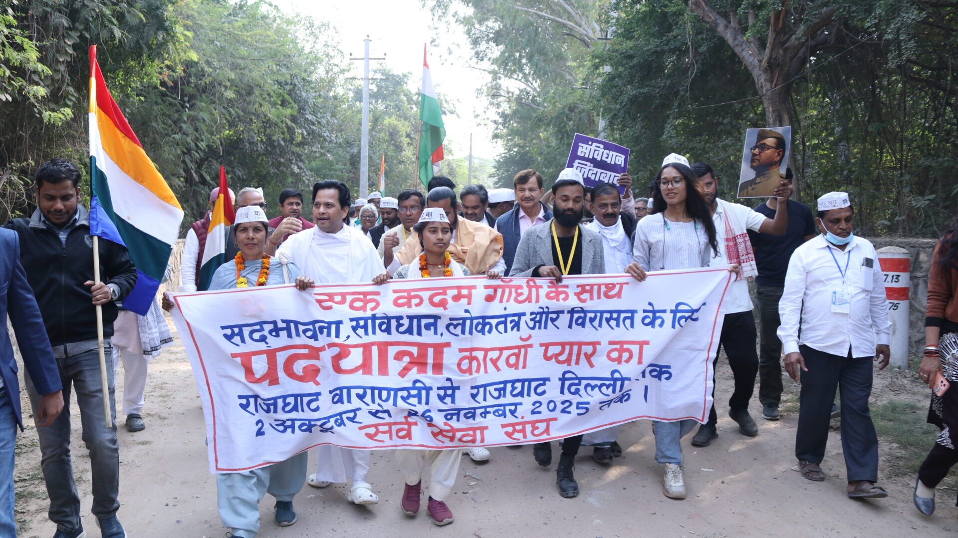 यह पदयात्रा राजघाट बनारस से राजघाट दिल्ली तक 2 अक्टूबर से 26 नवंबर 2025 के बीच सर्व सेवा संघ द्वारा आयोजित की गई। सर्व सेवा संघ, जिसकी स्थापना महात्मा गांधी के बलिदान के बाद आचार्य विनोबा भावे के मार्गदर्शन में अप्रैल 1948 में हुई थी, सत्य और अहिंसा पर आधारित शोषण एवं अन्याय-मुक्त सामाजिक व्यवस्था के निर्माण तथा गांधीवादी विचारों के प्रसार के लिए कार्यरत है। गांधी जी और विनोबा जी के आदर्शों को पुनर्जीवित करने और सामाजिक समरसता को सुदृढ़ करने के उद्देश्य से देश के विभिन्न राज्यों से आए सैकड़ों लोग इस पदयात्रा में शामिल हुए। यह यात्रा 25 नवंबर को मानव मंदिर मिशन, नई दिल्ली में पूज्य आचार्य श्री रूपचंद्र जी महाराज के सान्निध्य में संपन्न हुई, जहाँ श्री अरुण योगी जी ने संस्था के स्वयंसेवकों व ट्रस्टियों के साथ मानव मंदिर मिशन में सभी पदयात्रियों का हार्दिक और भव्य स्वागत किया तथा कार्यक्रम का समन्वयन प्रख्यात दर्शनशास्त्री डॉक्टर अरुण प्रकाश जी ने किया। इस अवसर पर साध्‍वी कनकलता जी महाराज, साध्‍वी समताश्री जी महाराज, संस्‍था के ट्रस्‍टी श्री सुभाष चंद्र तिवारी जी, खुदाई ख़िदमतगार संस्था के प्रमुख फ़ैसल ख़ान जी, वेदांत दुबे जी, नमन जैन जी, चंदन जी सहित मानव मंदिर मिशन का पूरा स्टाफ उपस्थित रहा। कार्यक्रम में मानव मंदिर गुरुकुल की छात्रा दिव्या द्वारा बहुत ही सुंदर भजनों की प्रस्तुति की गई जिसे सुनकर सभी श्रोता भाव विभोर हो गए। इस अवसर पर सभी पदयात्रियों के लिए भोजन की व्यवस्था की गई। इस दौरान पूज्य गुरुदेव आचार्यश्री रूपचंद्र जी महाराज ने विनोबा जी के साथ बिताए अपने प्रेरक संस्मरण भी साझा किए। अब 26 नवंबर को सभी पदयात्री राजघाट, नई दिल्ली पहुँचेंगे, जहाँ इस ऐतिहासिक पदयात्रा का अंतिम चरण पूर्ण होगा।